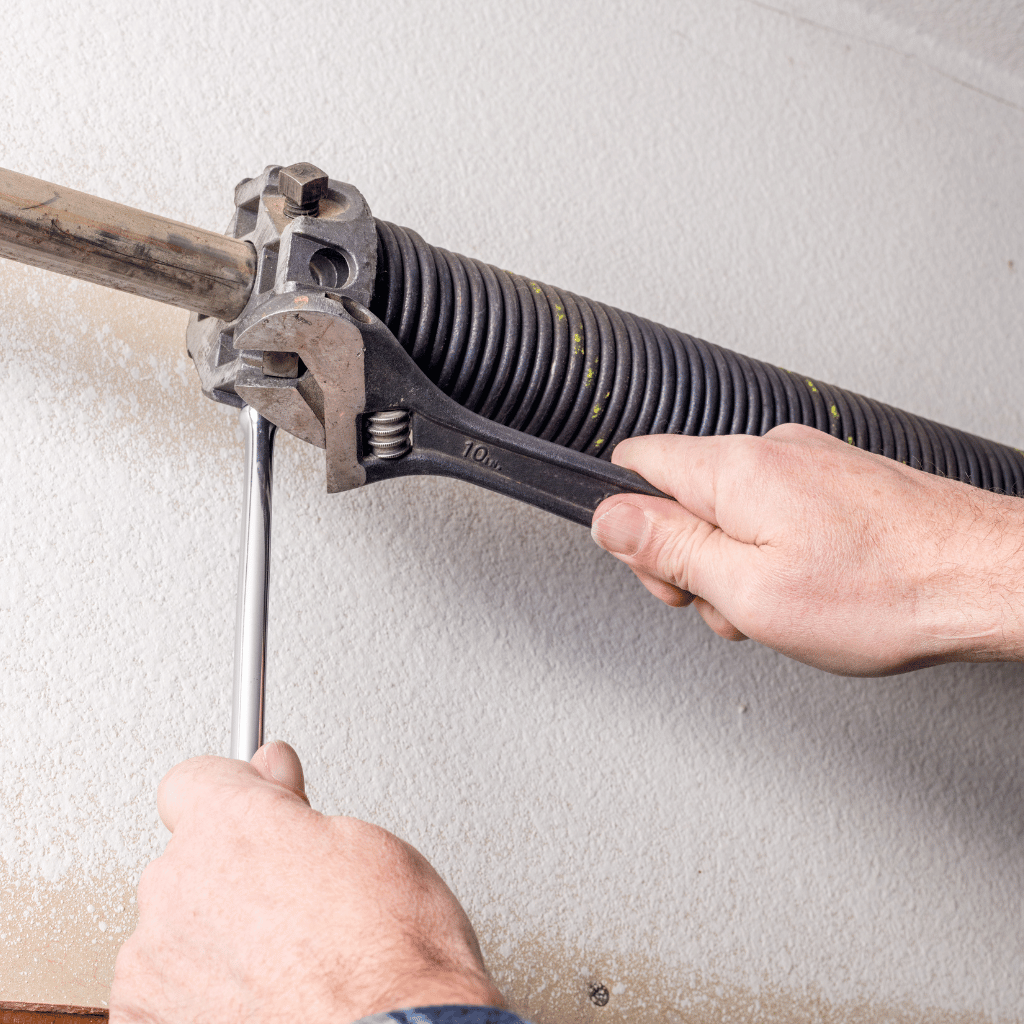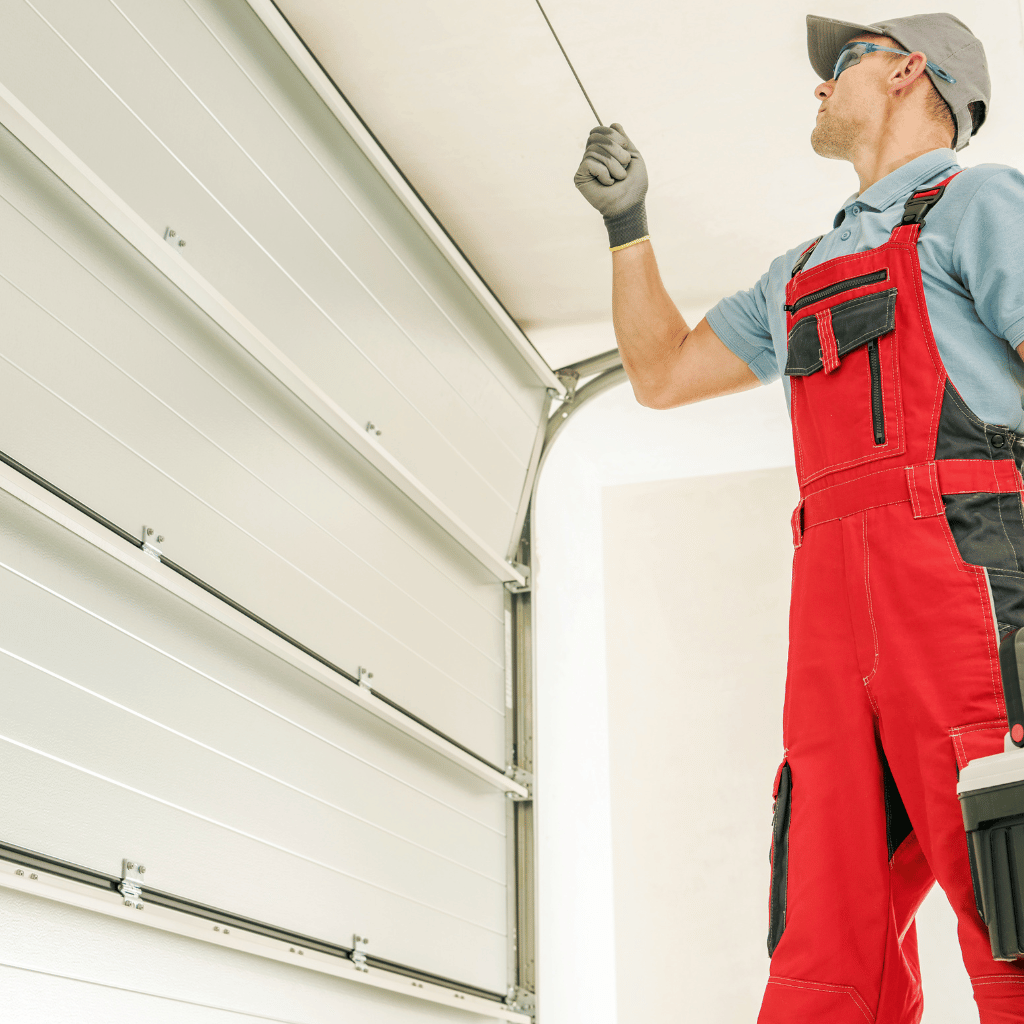 We begin with a full inspection of the garage door system, checking springs, cables, rollers, tracks, hinges, and the opener.